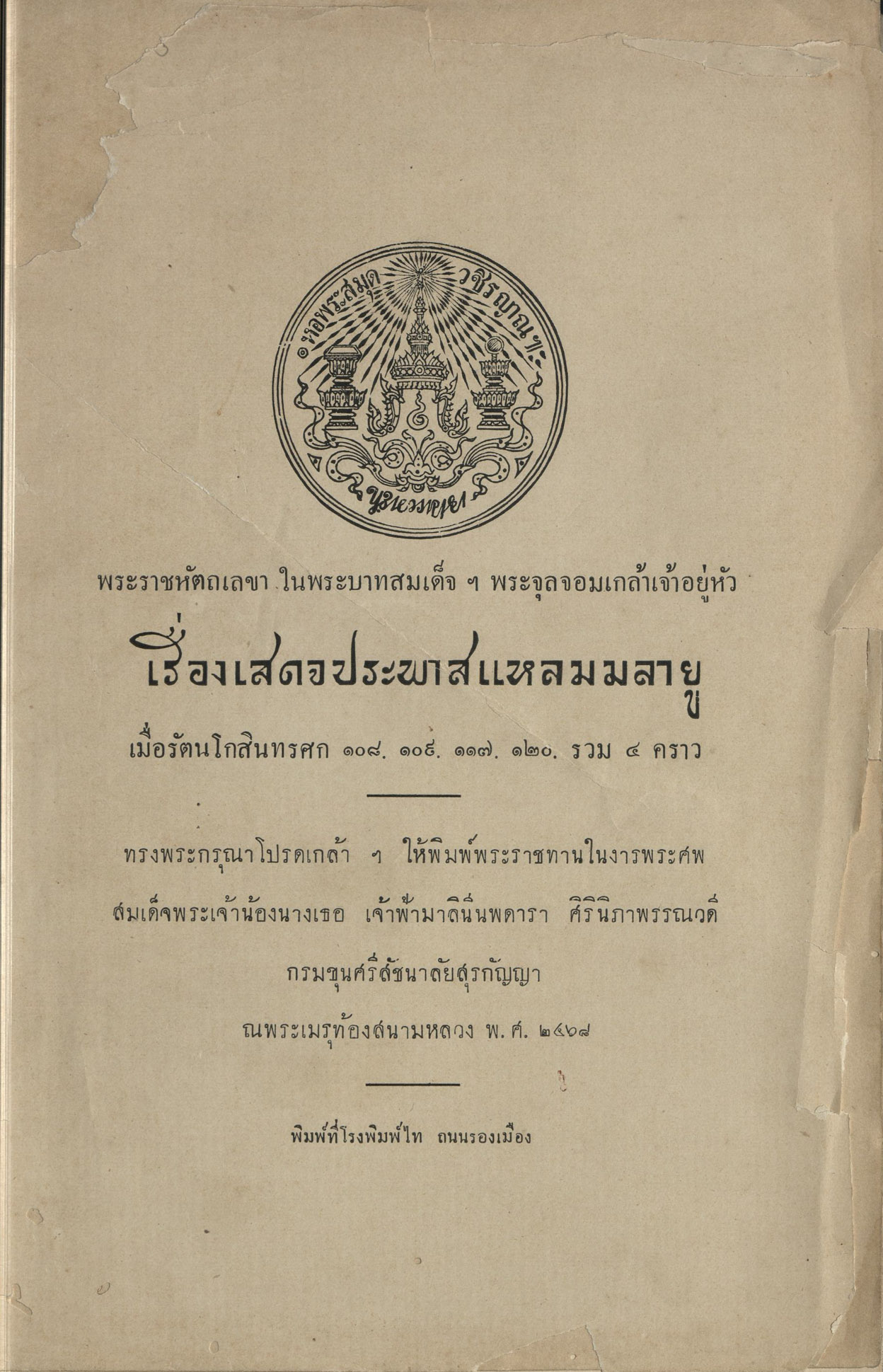พระราชหัตถเลขา ในพระบาทสมเด็จฯ พระจุลจอมเกล้าเจ้าอยู่หัว เรื่องเสด็จประพาสแหลมมลายู เมื่อรัตนโกสินทรศก ๑๐๘, ๑๐๙, ๑๑๗, ๑๒๐ รวม ๔ คราว