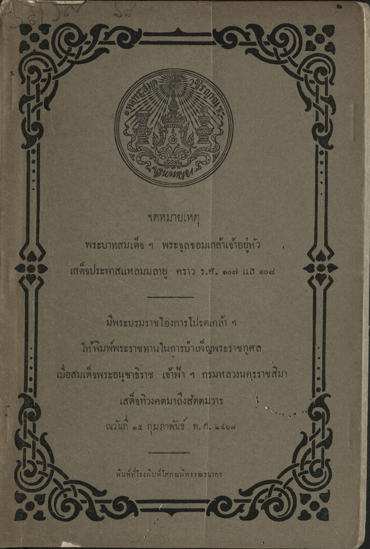 จดหมายเหตุพระบาทสมเด็จฯพระจุลจอมเกล้าเจ้าอยู่หัว เสด็จประพาสแหลมมลายู คราว ร.ศ.๑๐๗ แล ๑๐๘