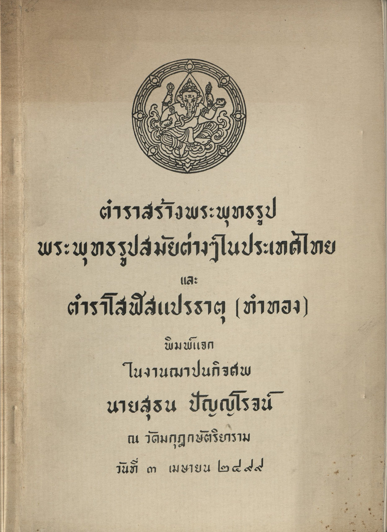 ตำราสร้างพระพุทธรูป พระพุทธรูปสมัยต่างๆในประเทศไทย และ ตำราโสฬสแปรธาตุ(ทำทอง)