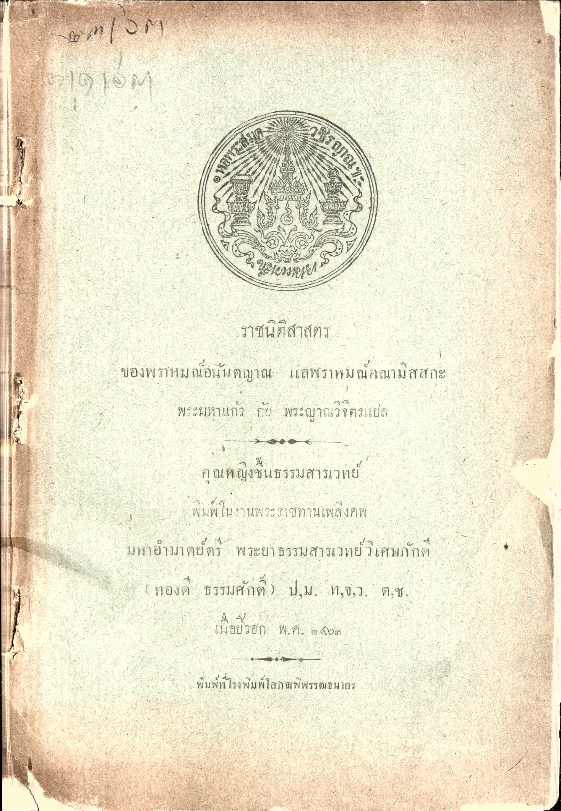 ราชนิติสาสตร ของพราหมณ์อนัตญาณ แลพราหมณ์คณามิสสกะ