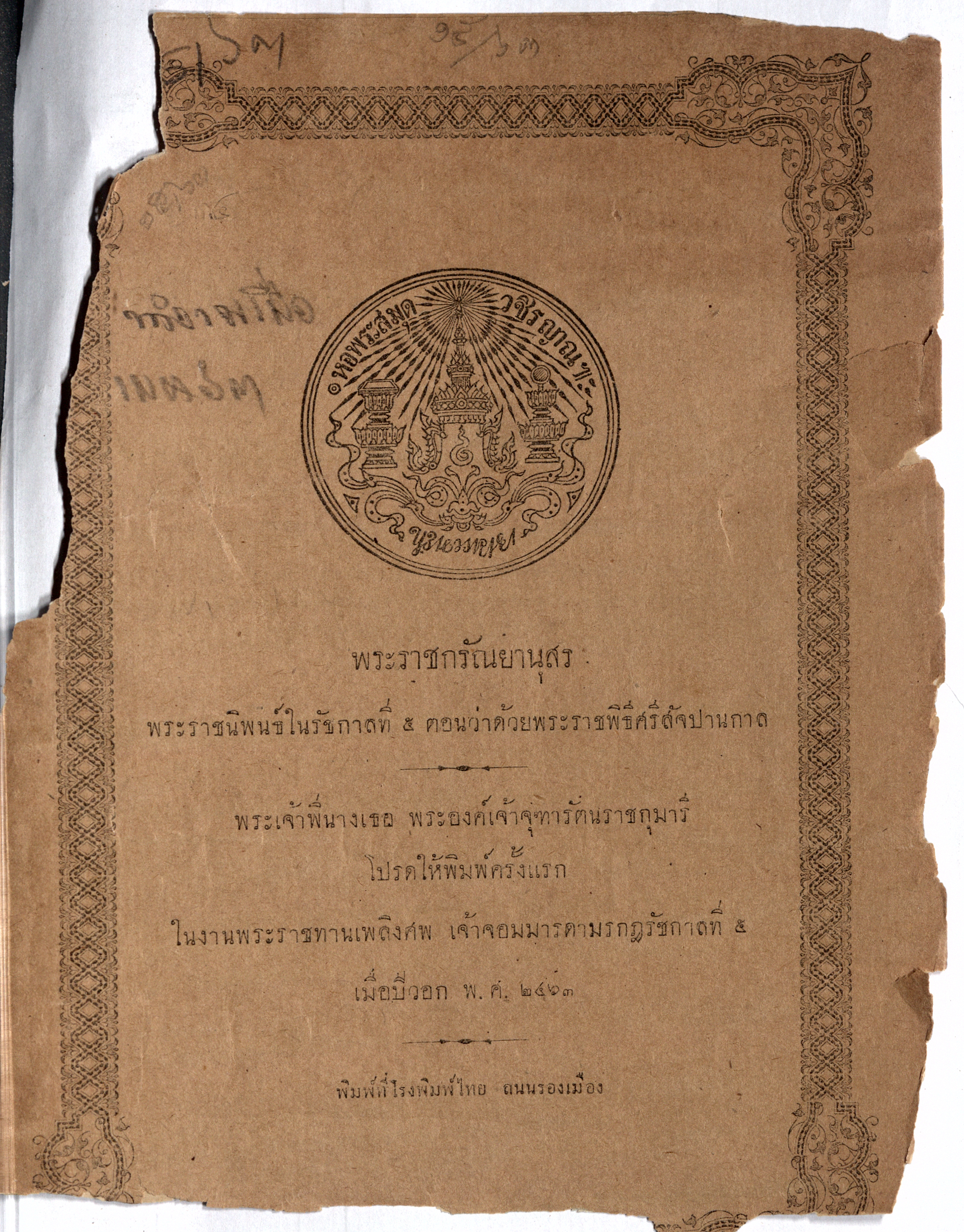 พระราชกรัณยานุสร พระราชนิพนธ์ในรัชกาลที่ ๕ ตอนว่าด้วยพระราชพิธีศรีสัจปานกาล