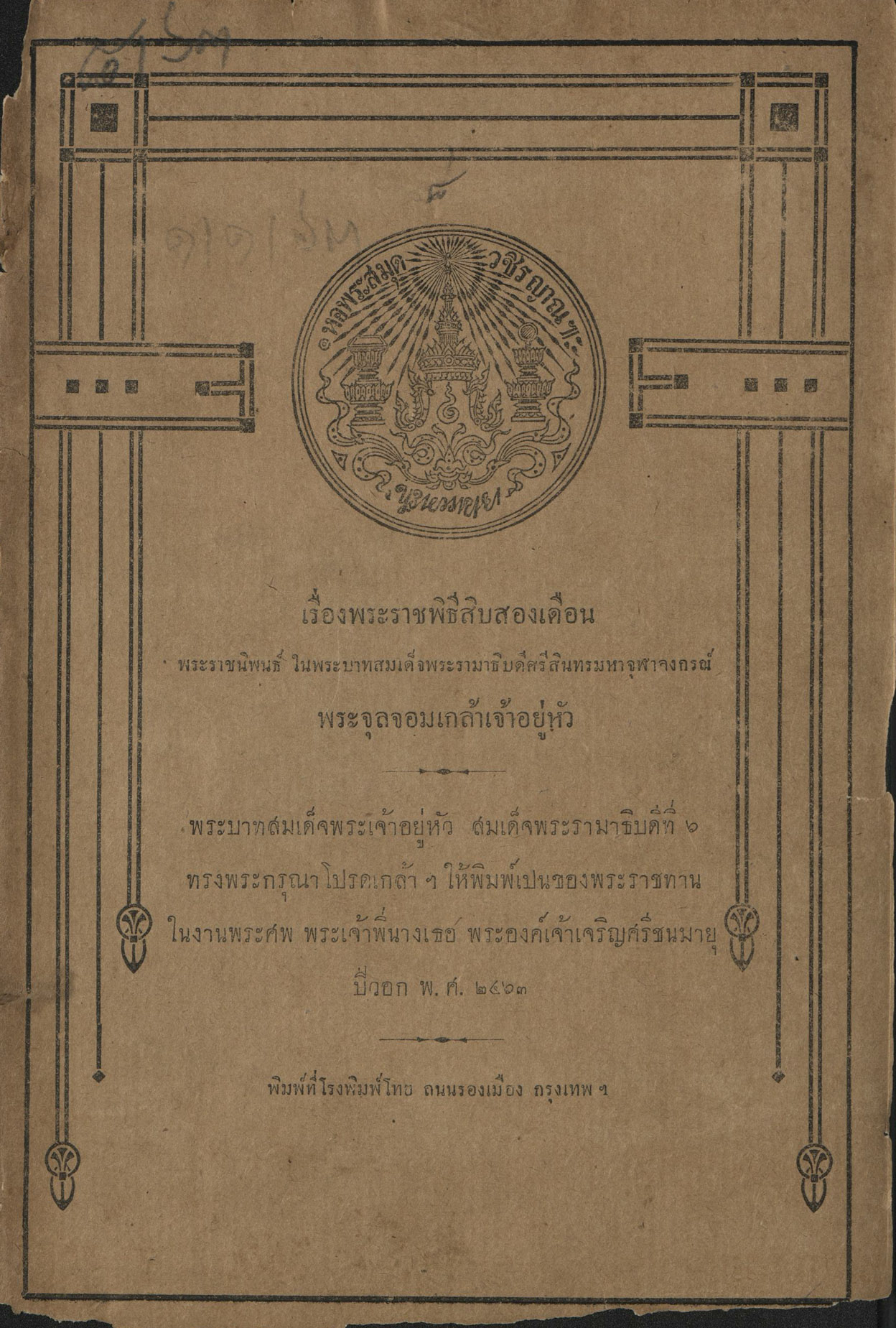 หนังสือเรื่องพระราชพิธี๑๒เดือนนี้ พระบาทสมเด็จพระจุลจอมเกล้าเจ้าอยู่หัวทรงพระราชนิพนธ์เมื่อปีชวด พ.ศ. ๒๔๓๑