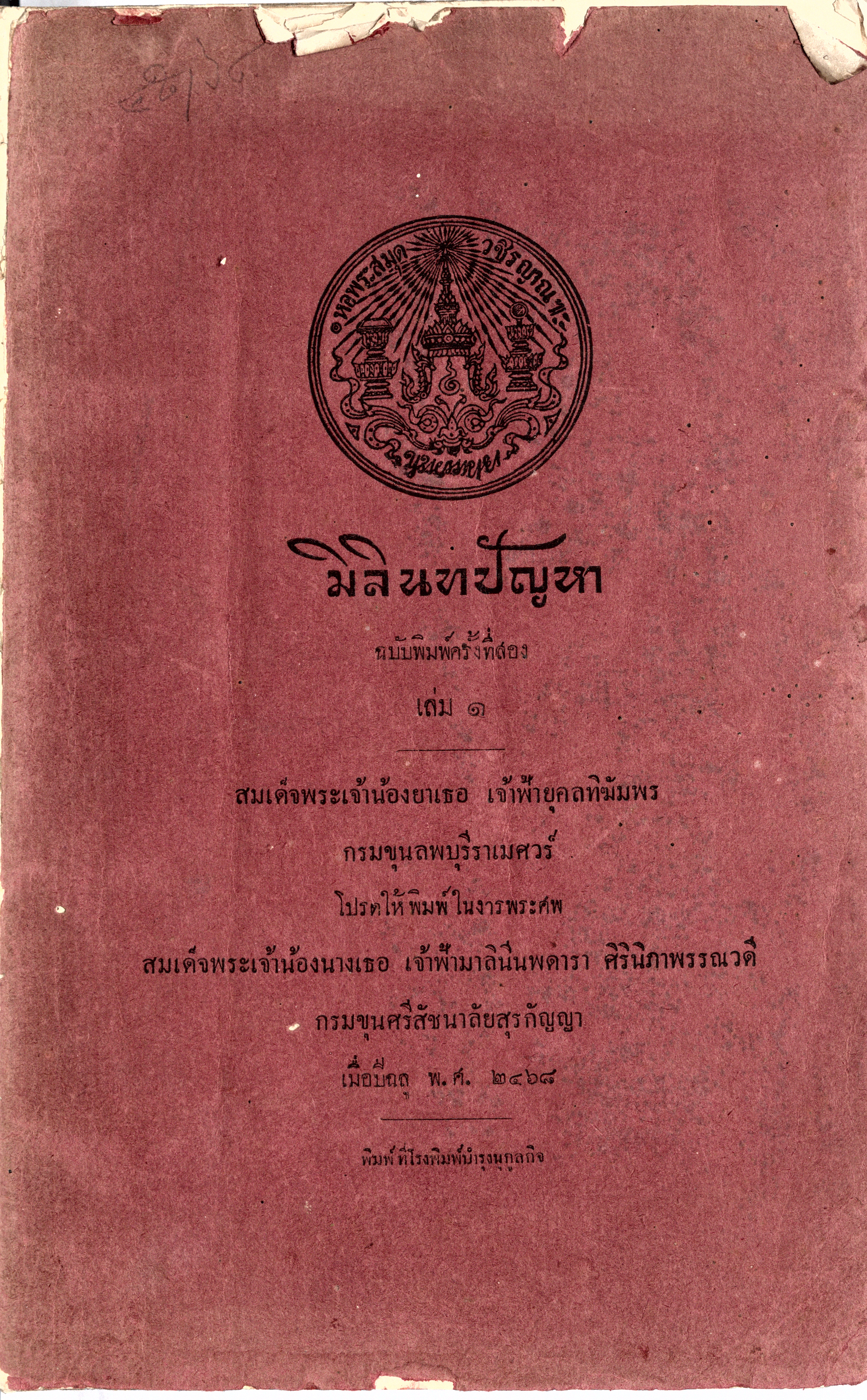 มิลินทปัญหา พิมพ์ครั้งที่สอง เล่ม ๑