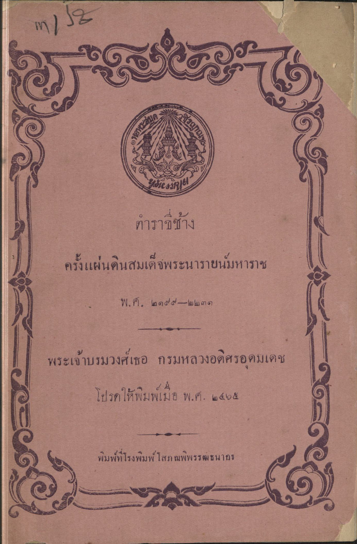 ตำราขี่ช้าง ครั้งแผ่นดินสมเด็จพระนารายน์มหาราช พ.ศ.๒๑๙๙-๒๒๓๑