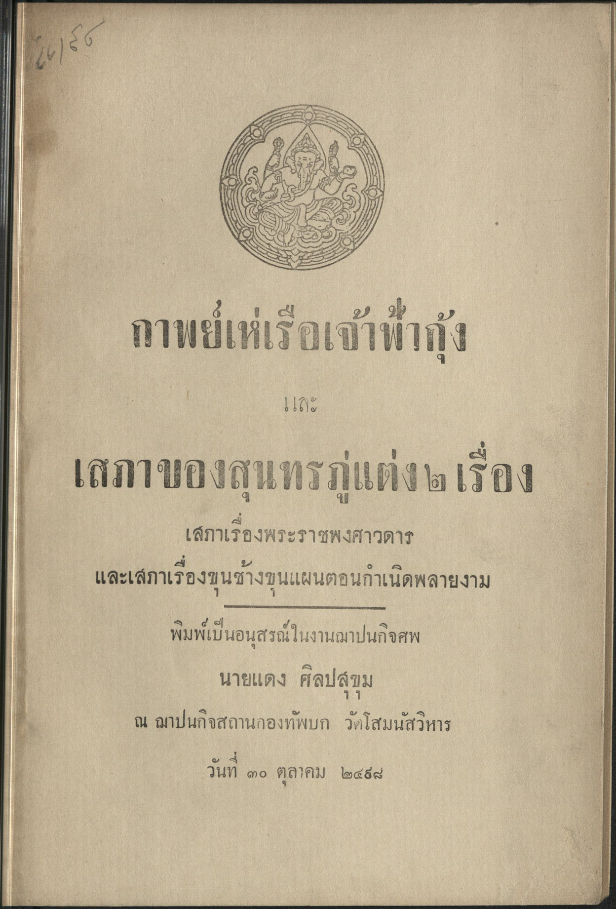กาพย์เห่เรือเจ้าฟ้ากุ้ง และ เสภาของสุนทรภู่แต่ง ๒ เรื่อง