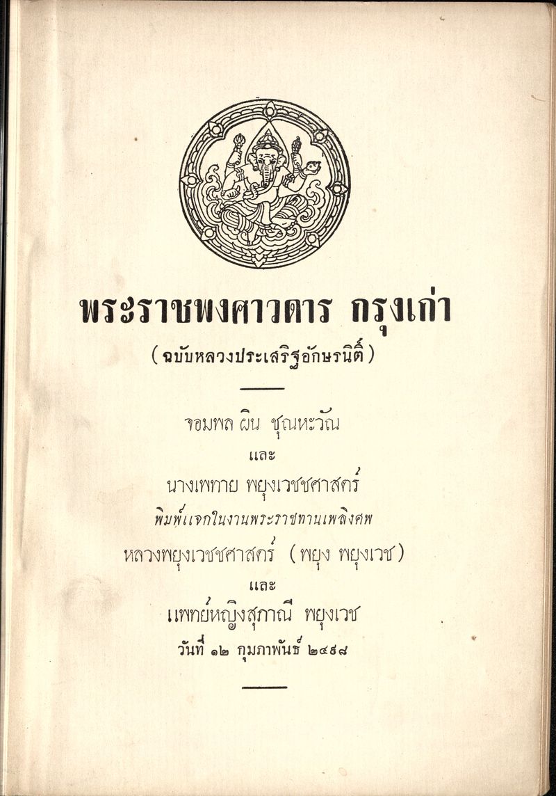 พระราชพงศาวดาร กรุงเก่า (ฉบับหลวงประเสริฐอักษรนิติ์)