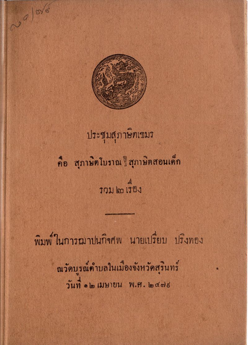 ประชุมสุภาษิตเขมร คือ สุภาษิตโบราณ สุภาษิตสอนเด็ก รวม ๒ เรื่อง