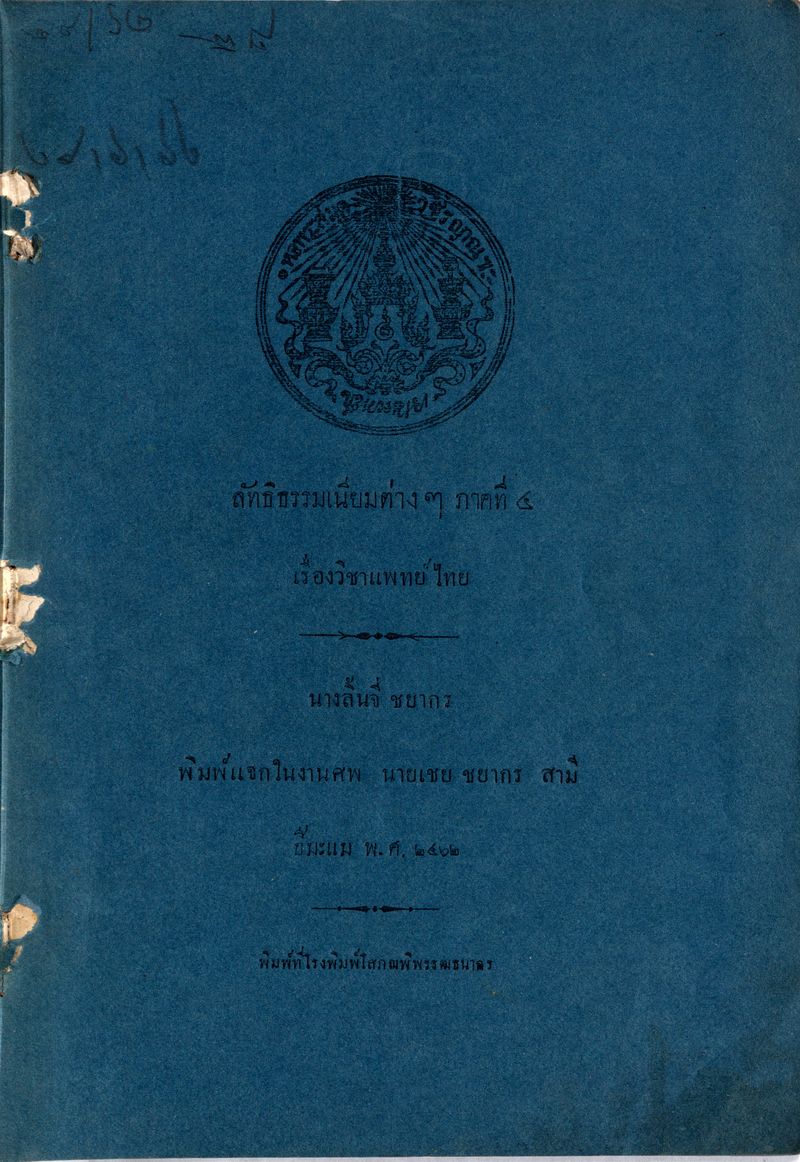 ลัทธิธรรมต่างๆ ภาคที่ ๔ เรื่องวิชาแพทย์ไทย