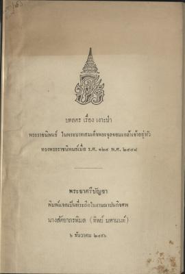 ว่าด้วยตั้งกรม แลตั้งเจ้าฟ้าในยุคแรก คัดจากต้นฉบับของ พระเจ้าราชวงษ์เธอ กรมหลวงบดินทรไพศาลโสภณ
