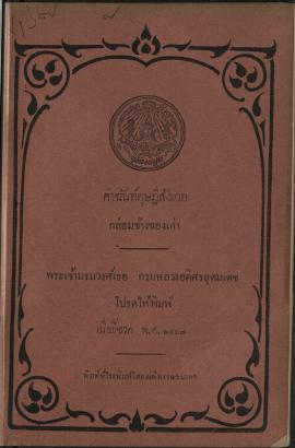 ว่าด้วยตั้งกรม แลตั้งเจ้าฟ้าในยุคแรก คัดจากต้นฉบับของ พระเจ้าราชวงษ์เธอ กรมหลวงบดินทรไพศาลโสภณ